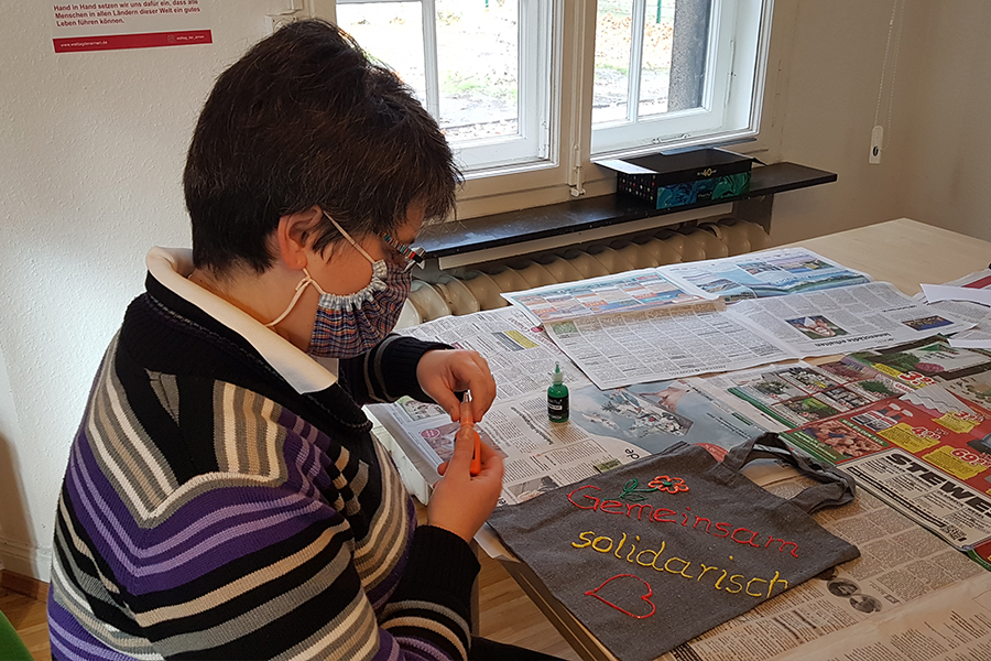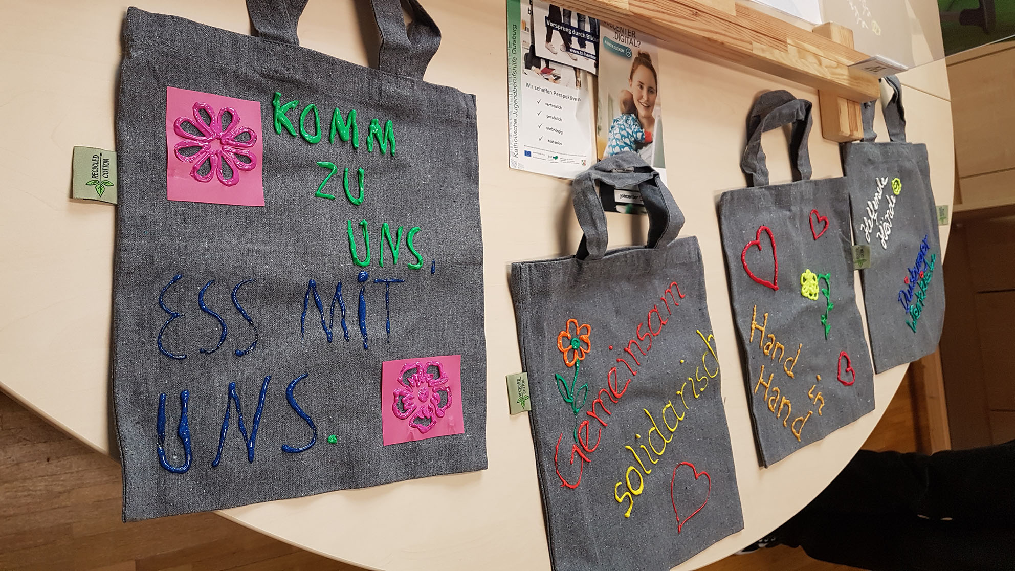 mit dem Verzieren der Stoffbeutel begonnen, mit denen sie sich als eines von insgesamt drei Projekten aus ihrer Einrichtung an der Challenge beteiligen.